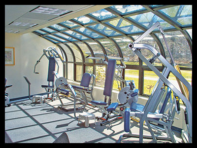 The simple lines of the rectangular section give the structure elegance. by virtue of the glazing capabilities of the Janco factory. The Janco factory-sealed insulated glass panels are specifically designed for solar living spaces.